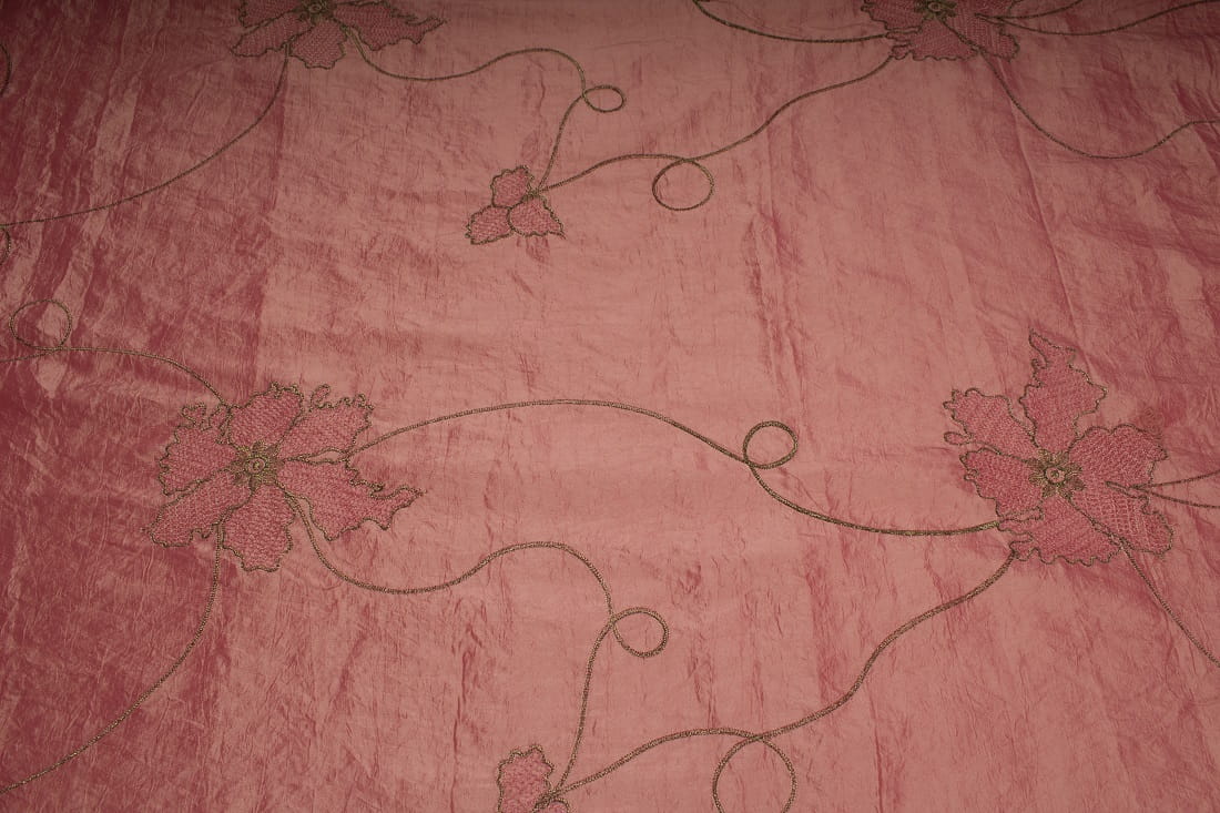 Taft Bestickter Blumen Rosa