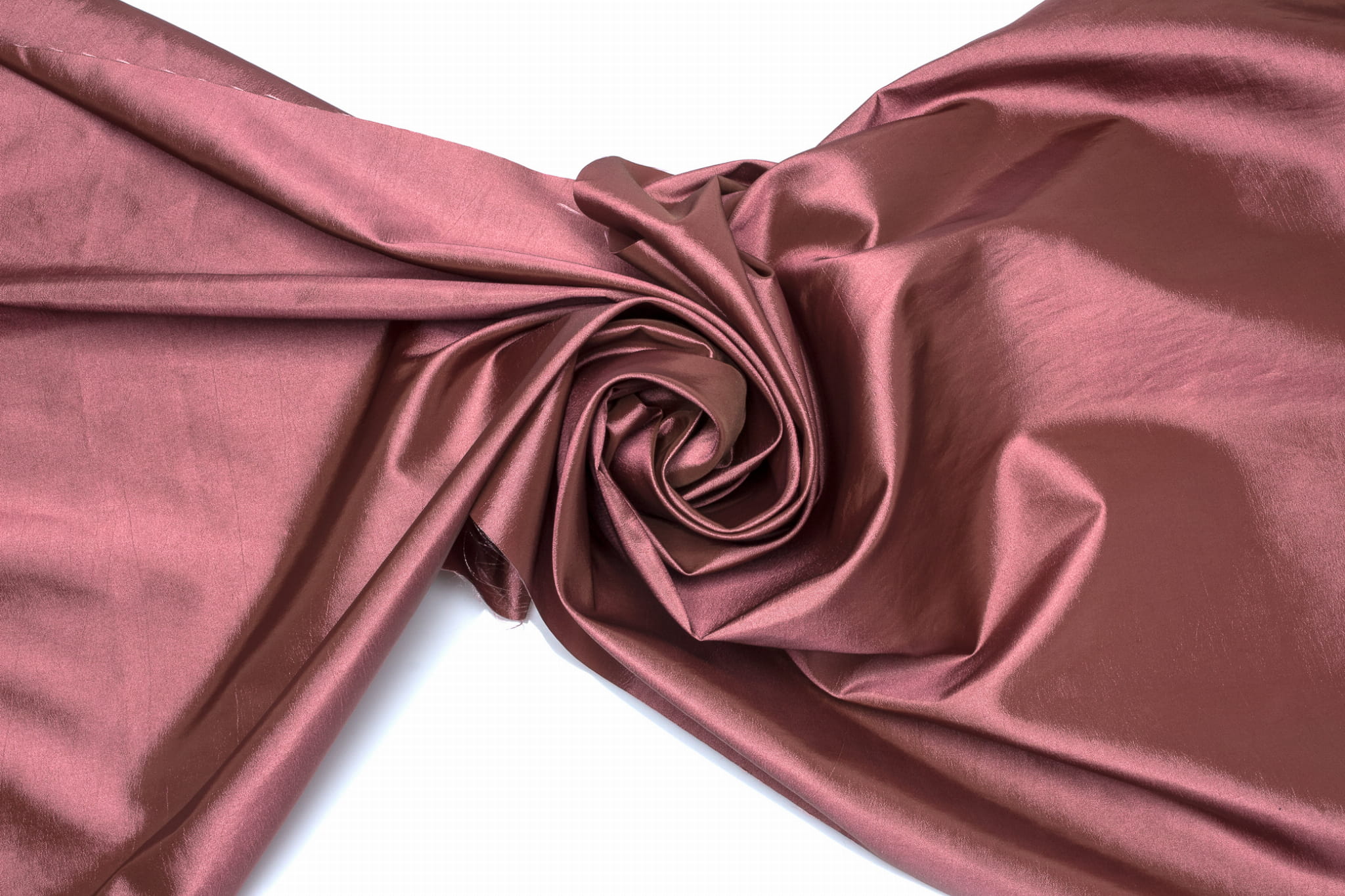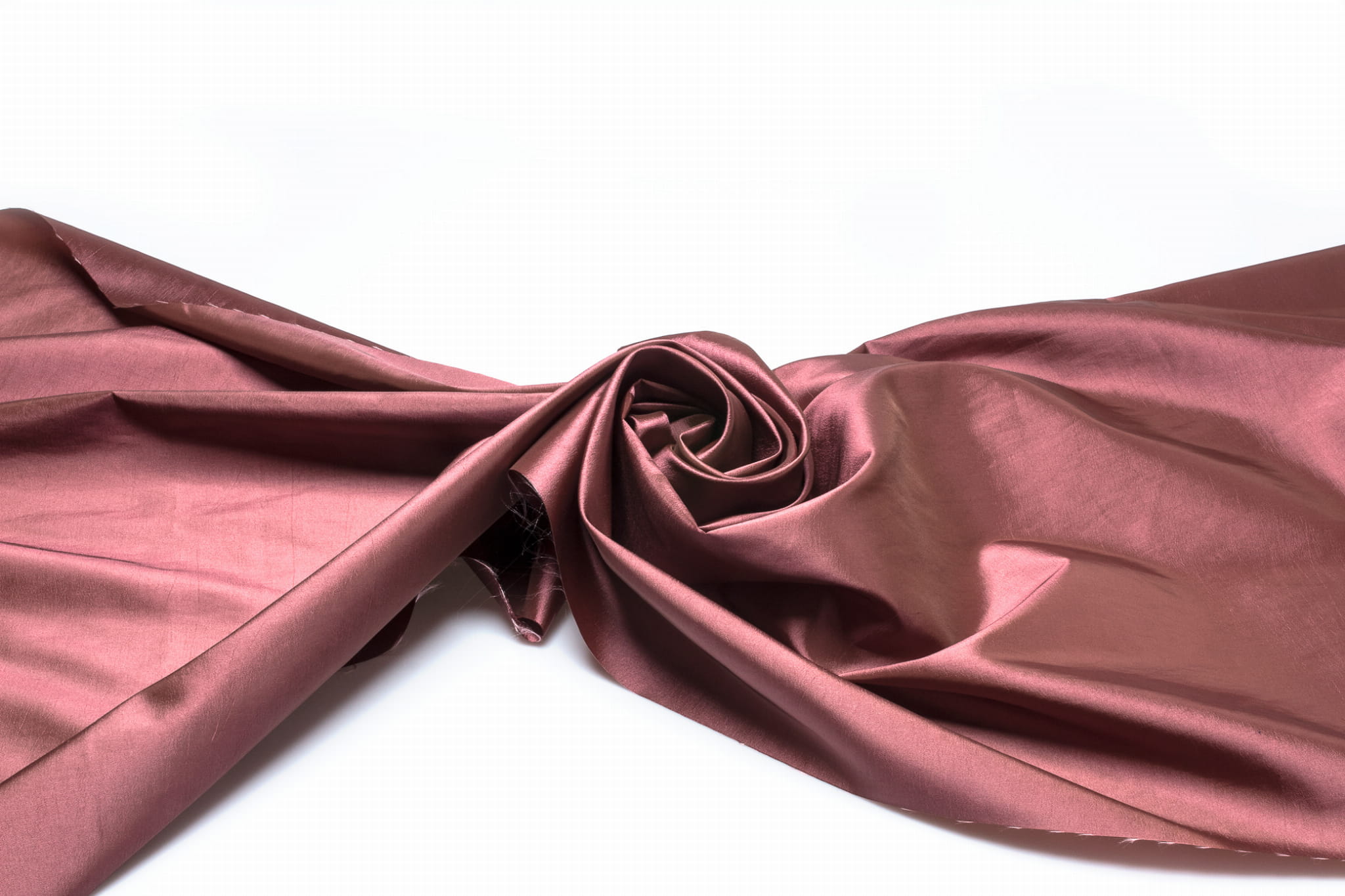 Glatter Taft ist ein äußerst luxuriöses und optisch beeindruckendes Material. Es ist steif und raschelt, aber sein Hauptvorteil ist eine glänzende Oberfläche, die beim Bewegen fabelhaft schimmert.