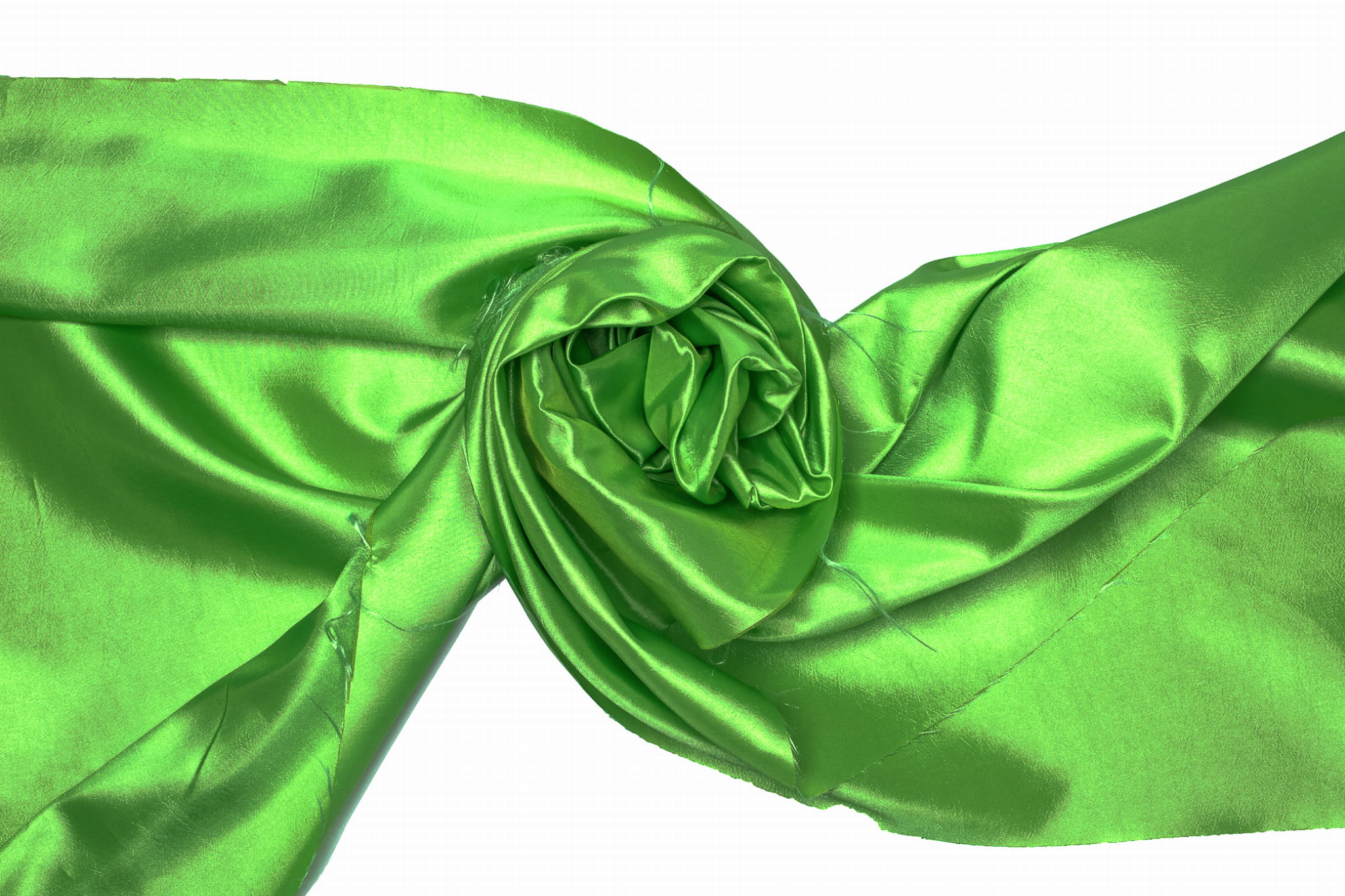 Glatter Taft ist ein äußerst luxuriöses und optisch beeindruckendes Material. Es ist steif und raschelt, aber sein Hauptvorteil ist eine glänzende Oberfläche, die beim Bewegen fabelhaft schimmert.