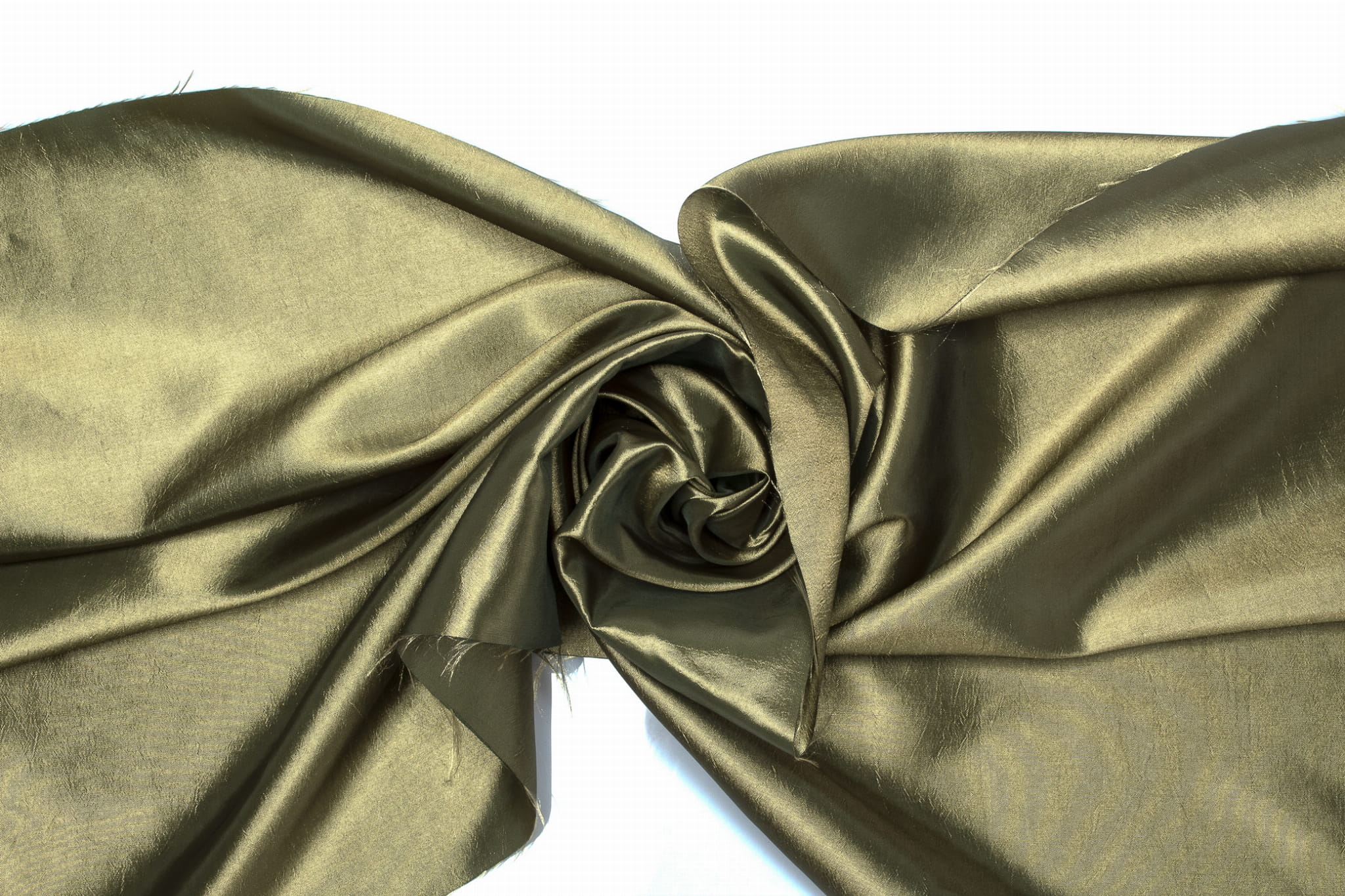 Glatter Taft ist ein äußerst luxuriöses und optisch beeindruckendes Material. Es ist steif und raschelt, aber sein Hauptvorteil ist eine glänzende Oberfläche, die beim Bewegen fabelhaft schimmert.