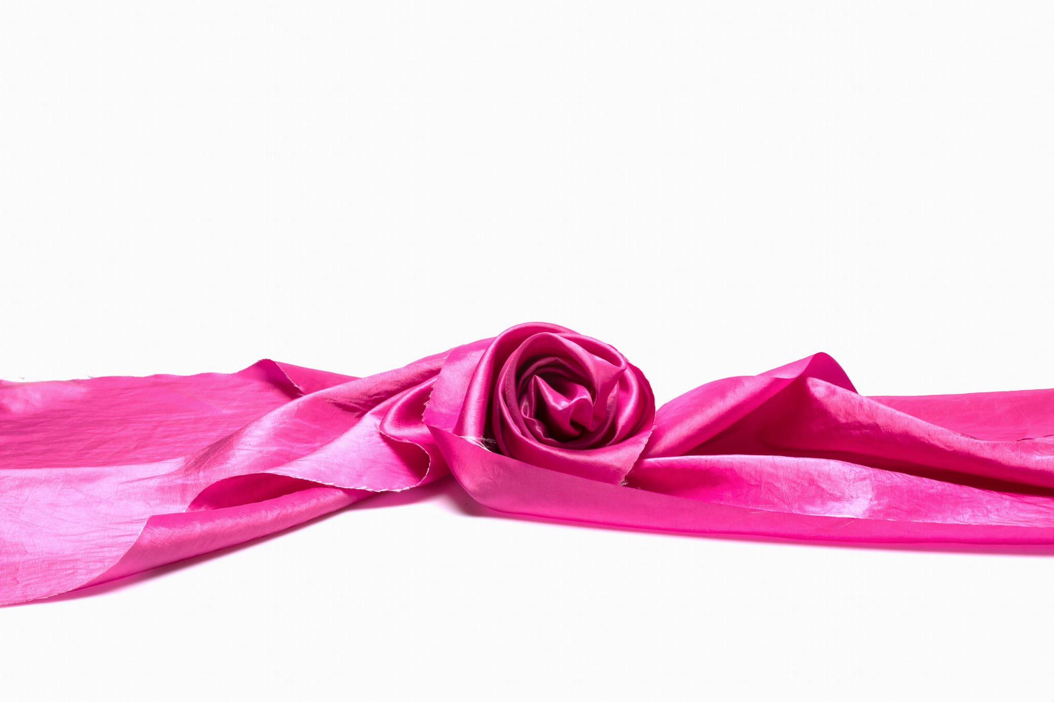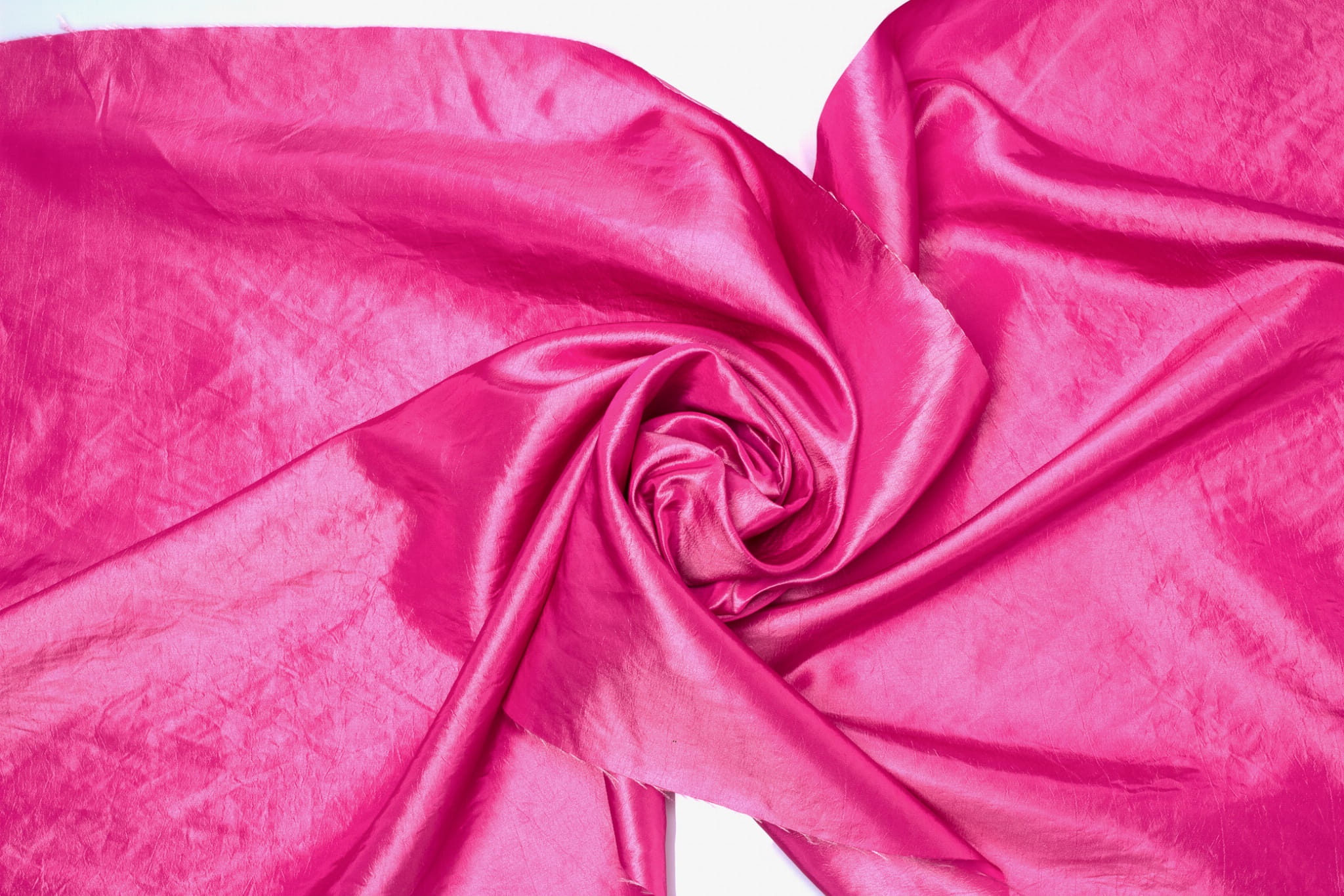 Glatter Taft ist ein äußerst luxuriöses und optisch beeindruckendes Material. Es ist steif und raschelt, aber sein Hauptvorteil ist eine glänzende Oberfläche, die beim Bewegen fabelhaft schimmert.