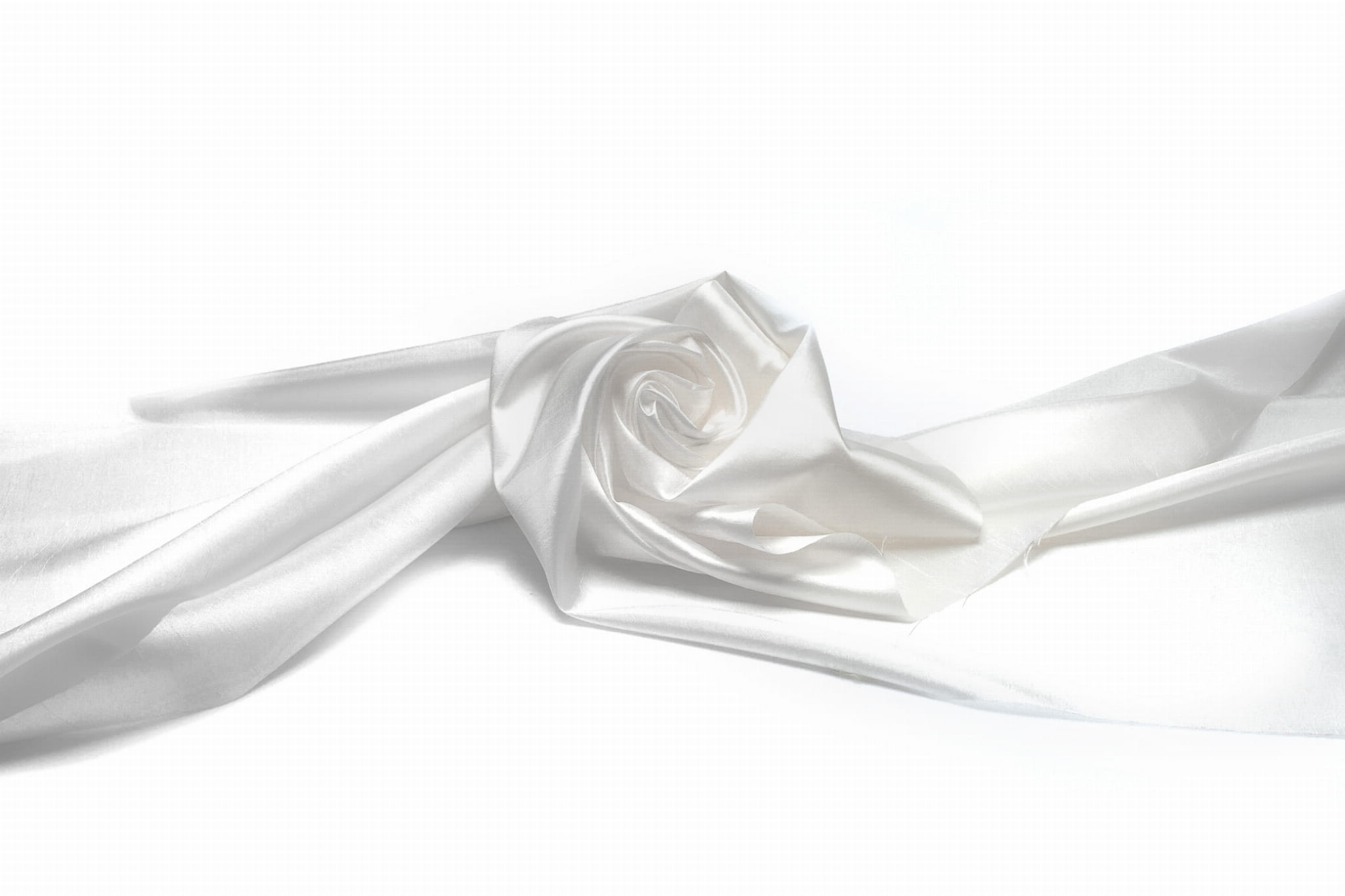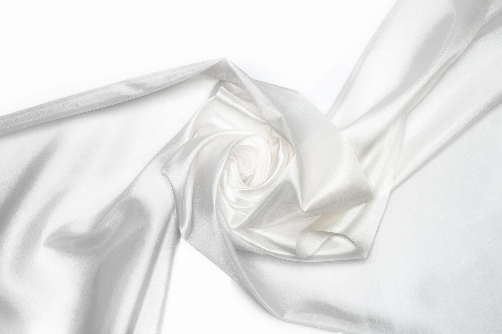 Glatter Taft ist ein äußerst luxuriöses und optisch beeindruckendes Material. Es ist steif und raschelt, aber sein Hauptvorteil ist eine glänzende Oberfläche, die beim Bewegen fabelhaft schimmert.