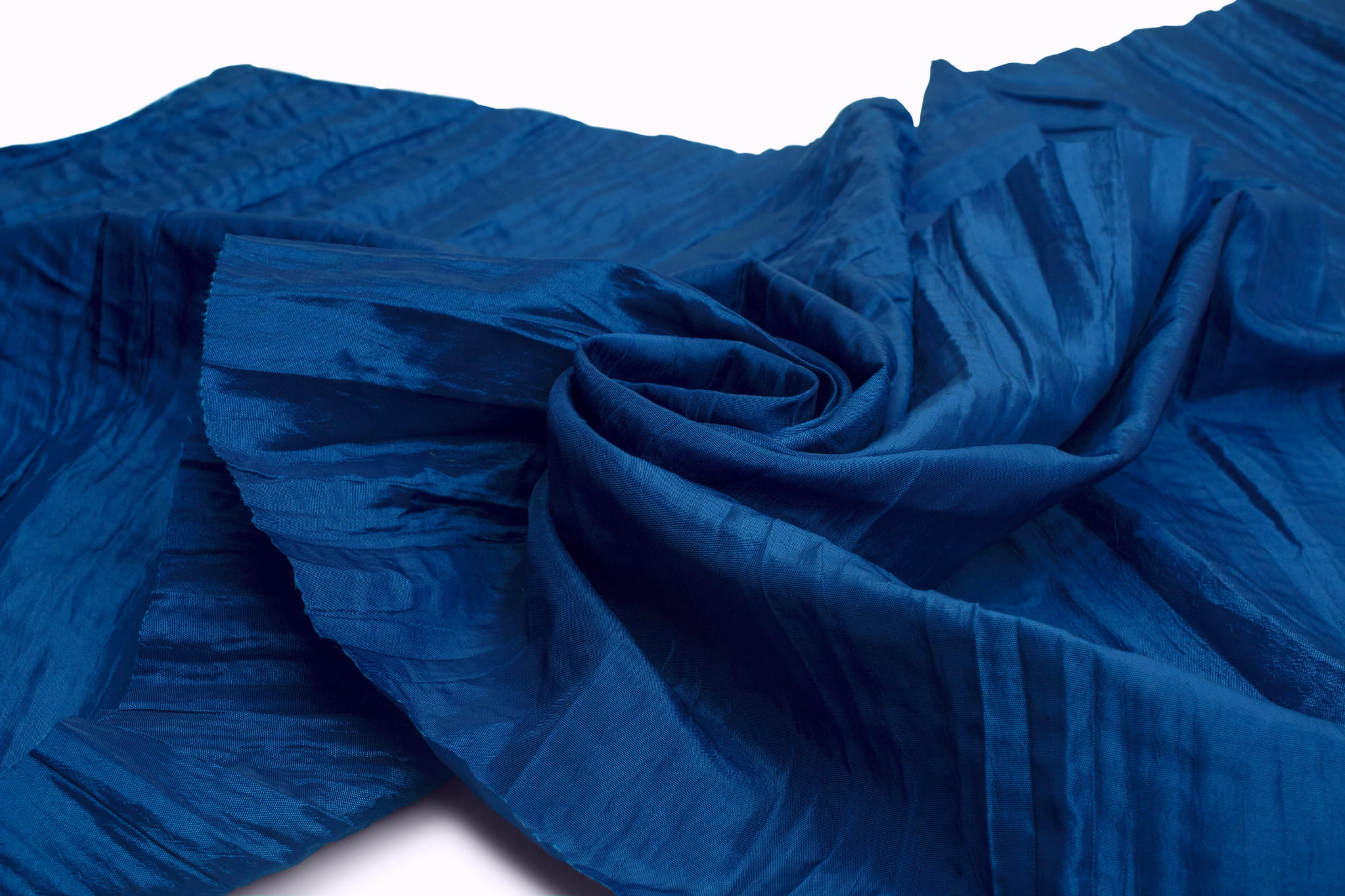 Taft zerdrücken ist ein sehr einzigartiges und optisch beeindruckendes Material. Der Stoff wurde Prozess Falten - Spezifische Verarbeitung des Materials besteht im einzigartigen Pressen der Stoffe, so dass dekorative Falten entstehen. Die Behandlung beinhaltet das Bügeln bei einer sehr hohen Temperatur - hoch genug, um Falten zu erhalten, ohne das Material selbst zu beschädigen. Die Falten sind sehr haltbar, wir können sicher sein, dass das resultierende Muster den Stoff dauerhaft schmückt.
