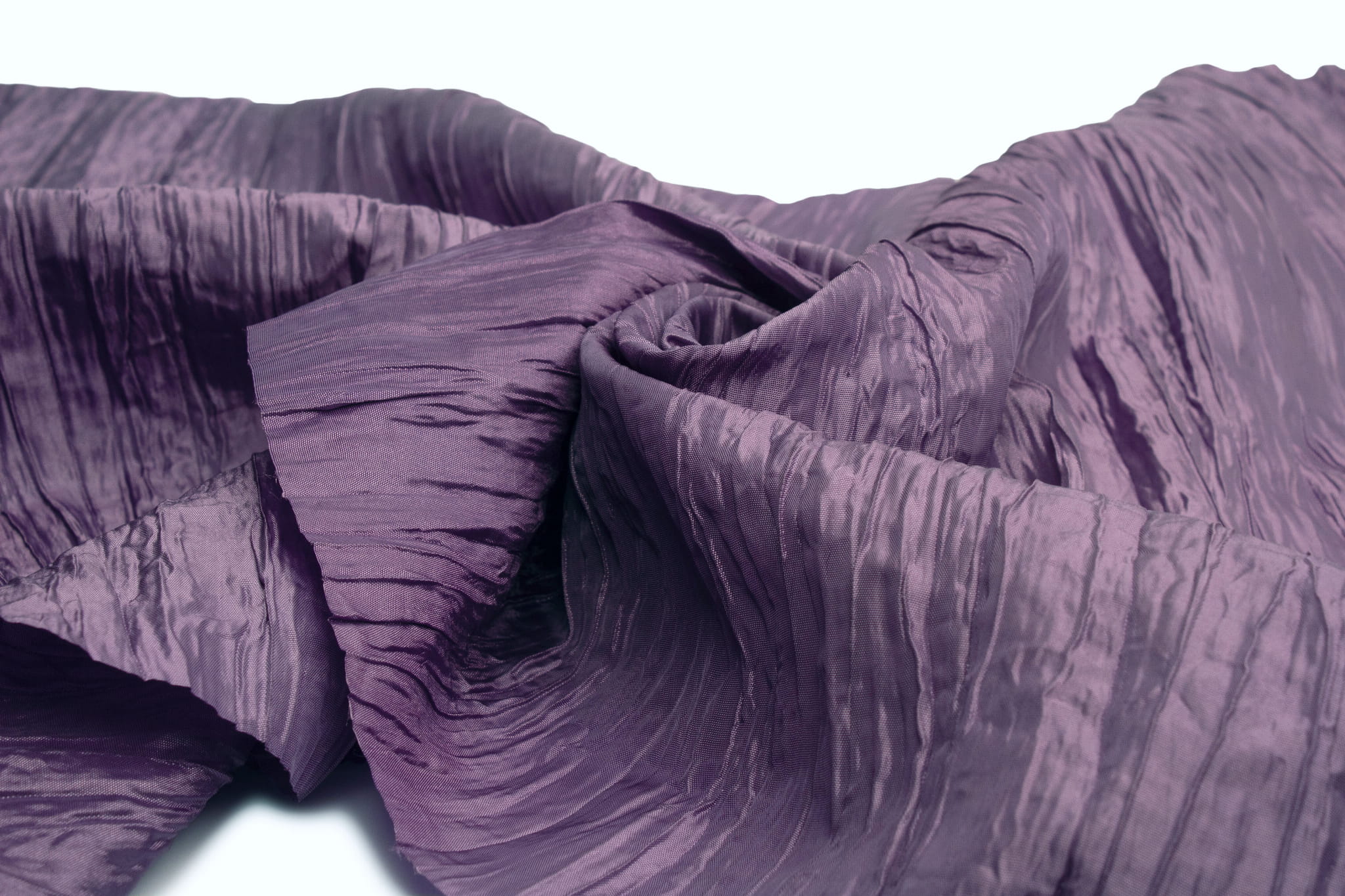 Taft zerdrücken ist ein sehr einzigartiges und optisch beeindruckendes Material. Der Stoff wurde Prozess Falten - Spezifische Verarbeitung des Materials besteht im einzigartigen Pressen der Stoffe, so dass dekorative Falten entstehen. Die Behandlung beinhaltet das Bügeln bei einer sehr hohen Temperatur - hoch genug, um Falten zu erhalten, ohne das Material selbst zu beschädigen. Die Falten sind sehr haltbar, wir können sicher sein, dass das resultierende Muster den Stoff dauerhaft schmückt.