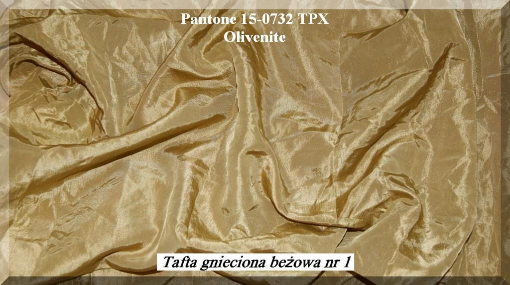 Taft zerknittert ist ein sehr einzigartiges und optisch beeindruckendes Material. Der Stoff wurde Prozess Falten - Spezifische Verarbeitung des Materials besteht im einzigartigen Pressen der Stoffe, so dass dekorative Falten entstehen. Die Behandlung beinhaltet das Bügeln bei einer sehr hohen Temperatur - hoch genug, um Falten zu erhalten, ohne das Material selbst zu beschädigen. Die Falten sind sehr haltbar, wir können sicher sein, dass das resultierende Muster den Stoff dauerhaft schmückt.