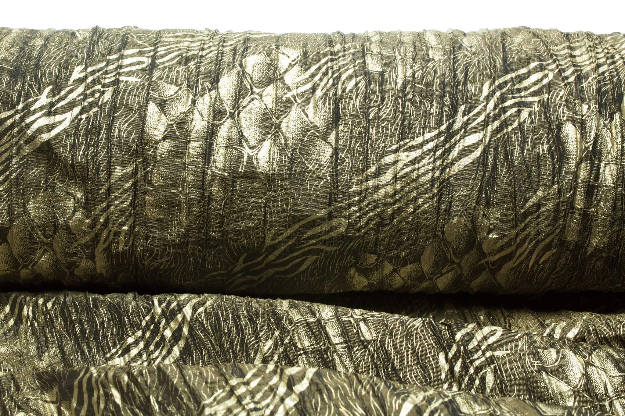 Tafta kreszowana, drukowana Jasna oliwka/Złoty