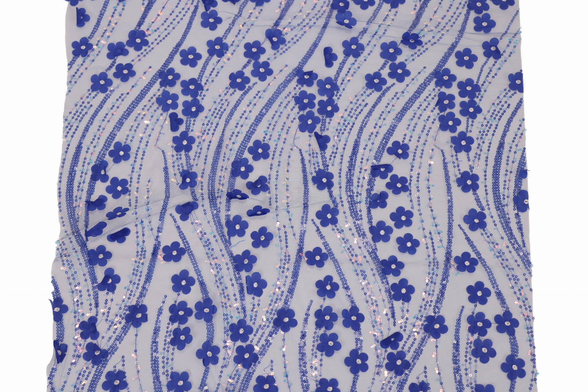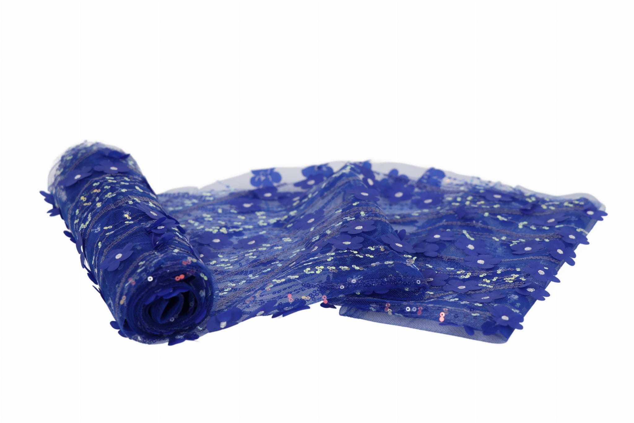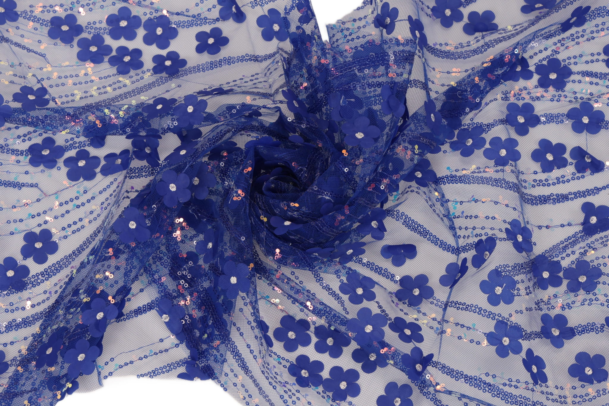 Entdecken Sie unseren Dekorationstüll mit aufgenähten Pailletten und Stoffblumen – ein außergewöhnliches, effektvolles Material mit reicher Struktur, das alle Blicke auf sich zieht und Projekten Eleganz sowie einen räumlichen Charakter verleiht. Ideal geeignet für Mädchenkleider, Abend- und Festkleider sowie für Innendekorationen. Die transparente Tüllbasis in Kombination mit dekorativen Applikationen erzeugt einen luxuriösen 3D-Effekt.